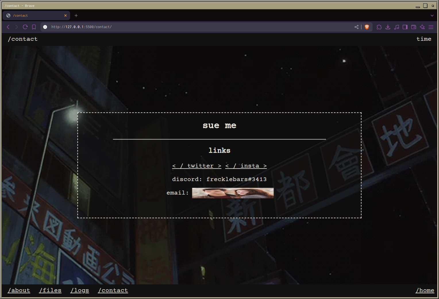 empty, yet the same background! in fact, all of the main pages keep the same background (the /links page inheriting that of the now discarded /contact page)
