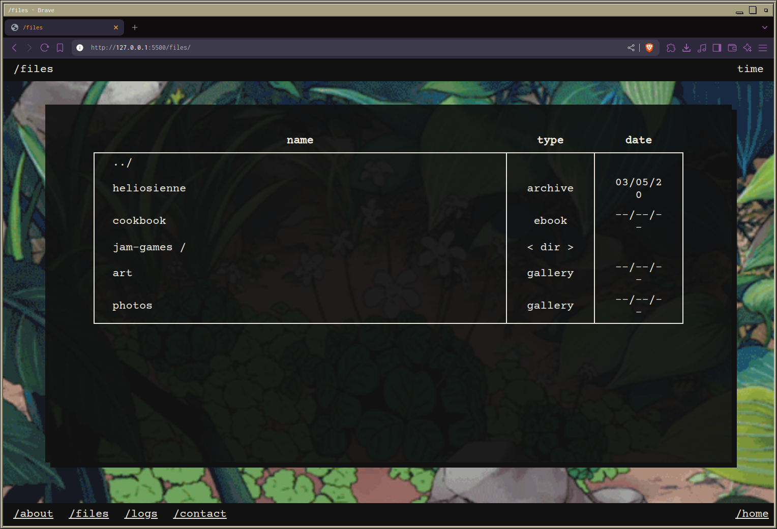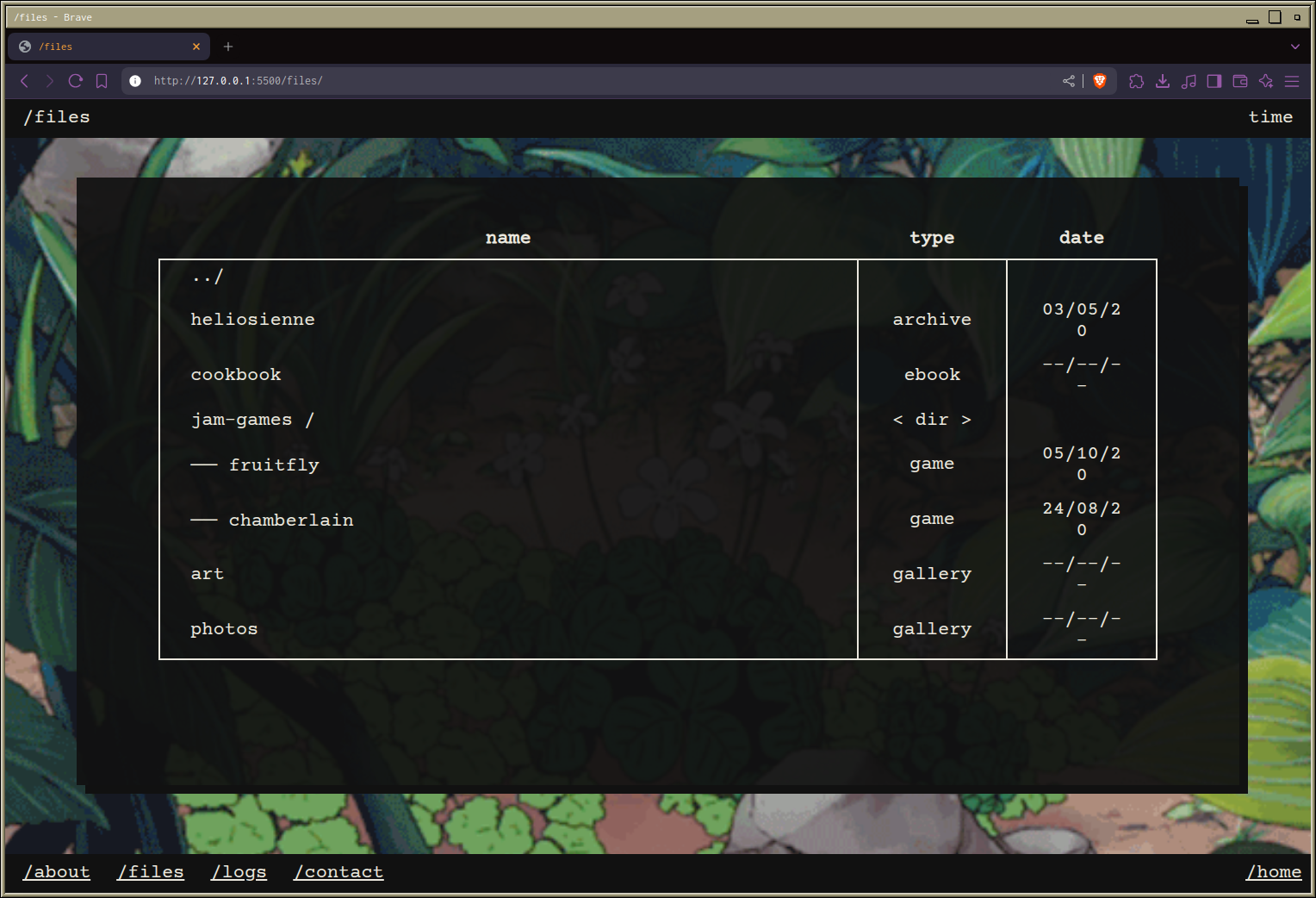 some years ago i dropped and broke an external hard drive i used to hoard collect media and other files on. only later i've later come to realise that it also had backups for some/all of the websites i made, which kind of bummed me out. really there was only one that i cared about, the expressively titled mvrf.cf, briefly documented in my log about past iterations of this website (the orange one with the dog). it always meant a lot to me for reasons i don't have the filesize to explain right now. i kept looking for backups of it in other corners of my computer, old drives i had, an old pc. nothing,,, until tonight! it was nested inside the files for a different website (one which i also presumed lost, nested inside some old version of my "code" folder (which i moved on from using in and have presumed it to be deleted since about 2021 or so? (which was in an old archive folder nestles some long filepaths in (it's a complicated system))))