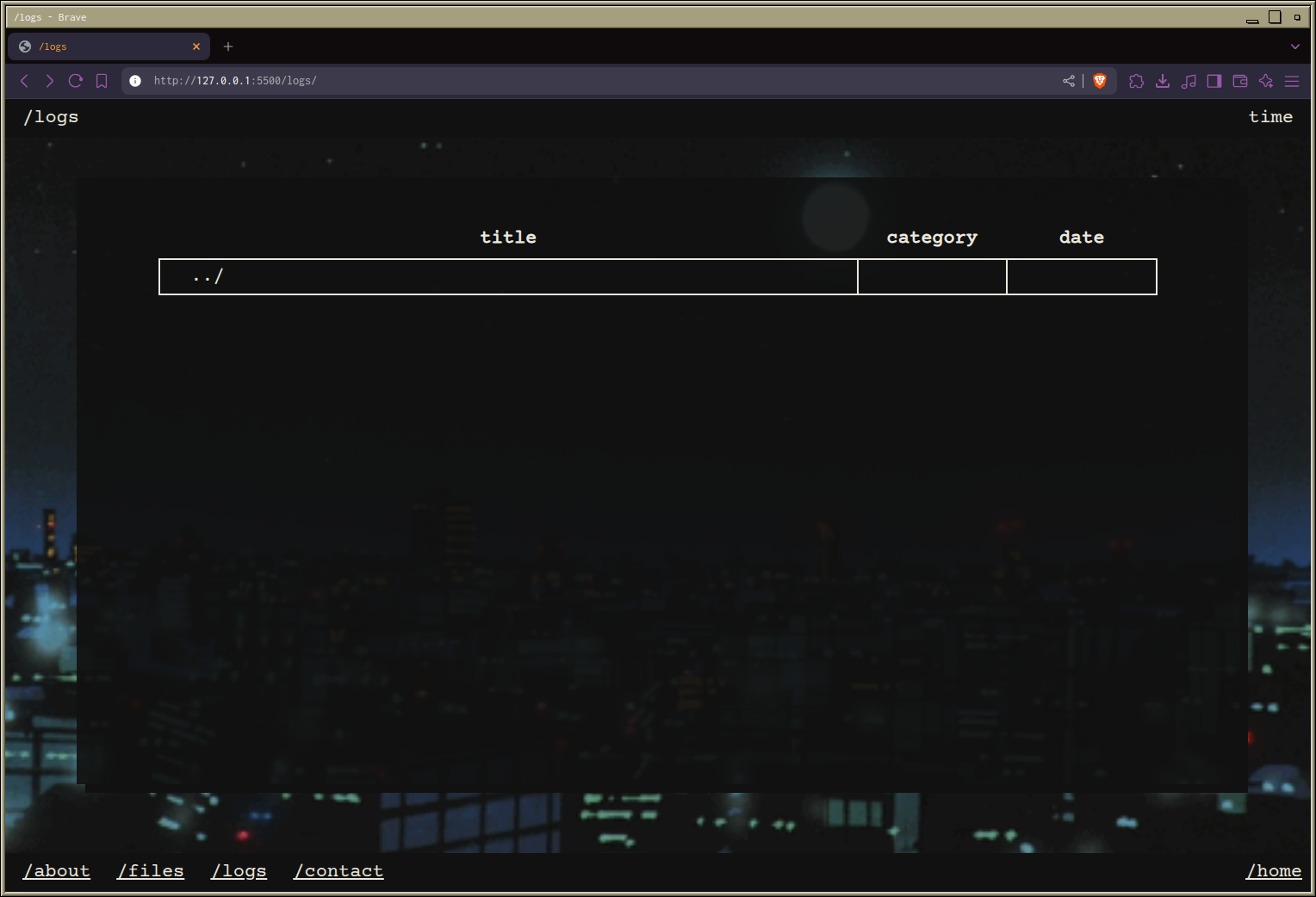 this log is not about mvrf.cf. instead with it i found another neat surprise, a very early/first draft of this very site! i honestly forgot about this version entirely so it was a really nice surprise, like unearthing an old obscure development disc nobody even knew existed. i sure didn't